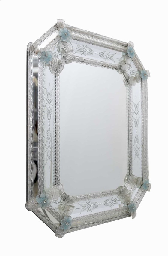 Espejo octogonal con flores de cristal de Murano veneciano del siglo XX