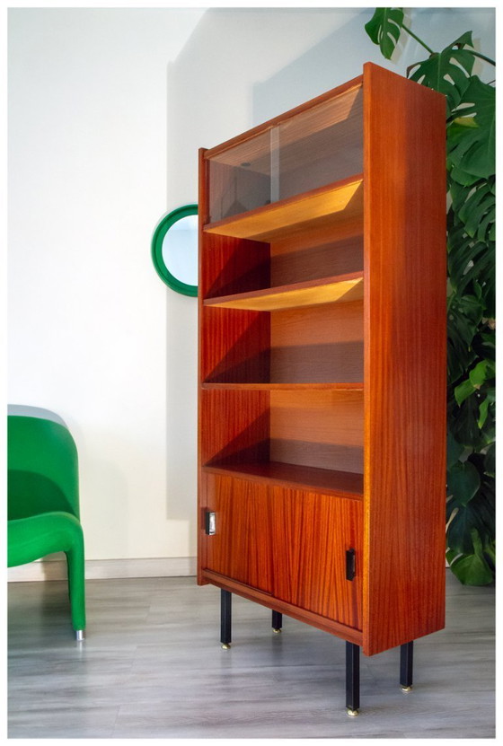 Elegante estantería de los años 60, sobria y minimalista, elaborada en caoba.