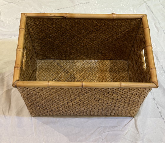 Cesta rígida de bambú con asas.
