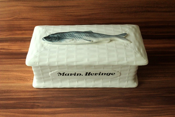 Excepcional tarro de pescado - terrina de pescado - tarro de arenque - cerámica
