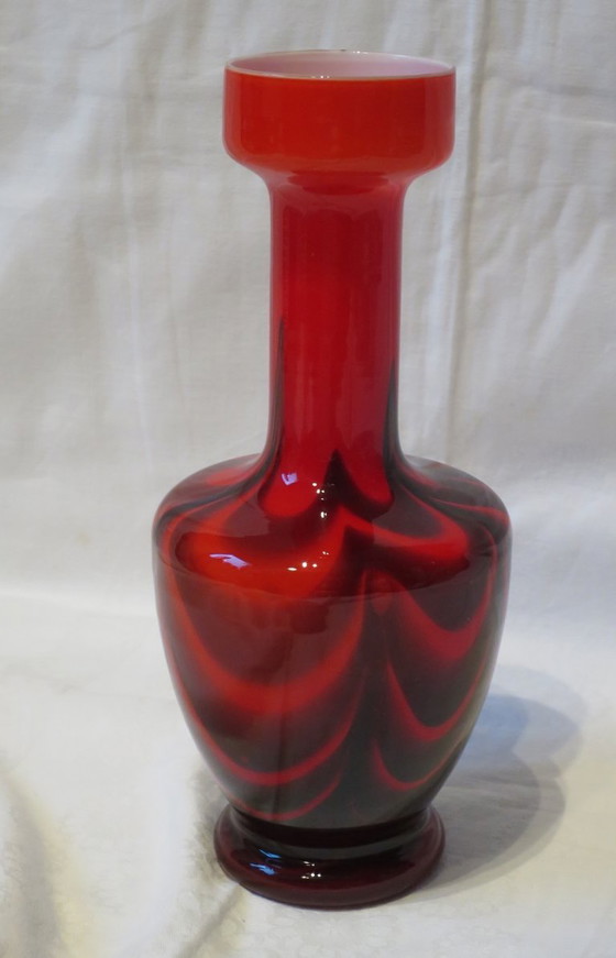 Ofrezco este jarrón de cristal rojo en excelente estado de conservación.