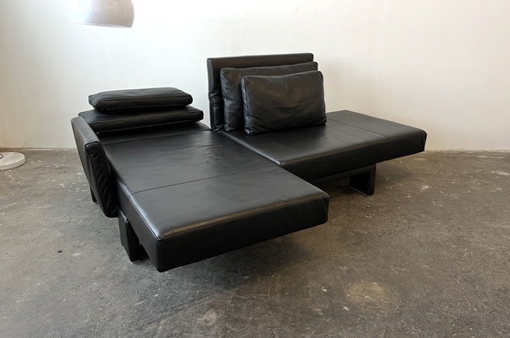 «SCENE sorprende por sus numerosos detalles. Los respaldos ajustables individualmente y los asientos giratorios transforman el sofá en un pequeño conjunto esquinero, una chaise longue o, con los respaldos abatidos, en una cama individual o doble en un instante. Los reposabrazos ajustables, accesibles al girar los asientos, también sirven como estante o mesita de noche».