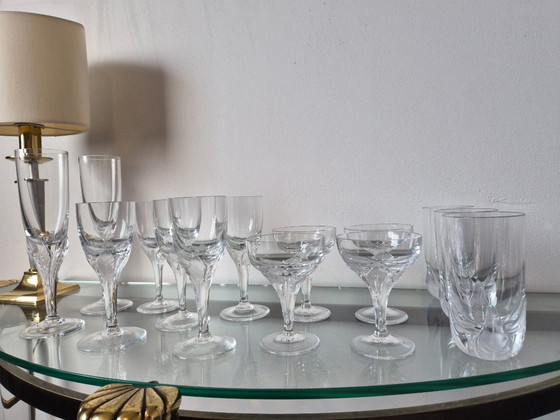 14 vasos vintage Franz Wittwer "Eroika" tallados a mano. Fabricados entre 1970 y 1979. Ideales para complementar o coleccionar. Sin roturas ni desconchones.