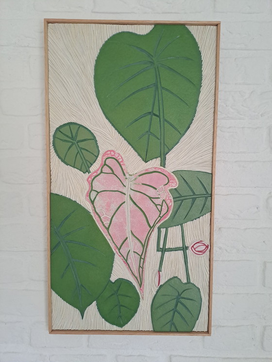 Esta moderna pieza de decoración de pared de Gallery Suncorner es un bello complemento para cualquier interior. La obra muestra una representación abstracta de hojas en vibrantes tonos verdes y rosas, enmarcadas por un marco de madera. Las distintas líneas cuidadosamente recortadas en el linóleo le confieren una textura y profundidad únicas. Perfecta para los amantes del arte moderno que quieran aportar un toque de naturaleza a su espacio. Anneke Winterman terminó Artes Visuales Autónomas en 2005 en la Escuela de Arte de Utrecht. Ha creado varias obras de arte por encargo para particulares. Anneke Winterman ha participado en varias exposiciones colectivas y ha realizado exposiciones individuales en su región. Su obra ha aparecido varias veces en diversas publicaciones. Para más información, visite su sitio web www.annekewinterman.nl