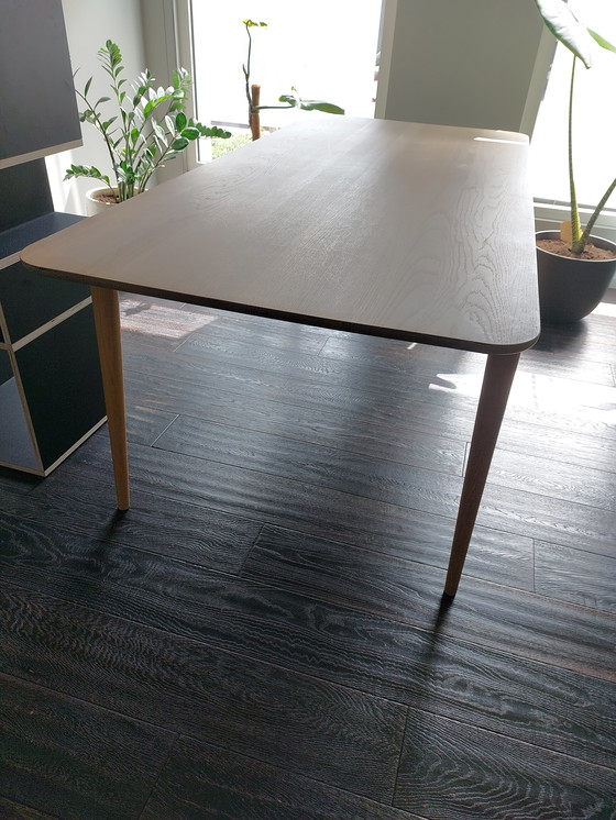 Esta es una mesa de comedor Gazzda Fawn de 200 x 90 cm. Presenta un diseño moderno y elegante con un acabado de madera lisa, ideal para comedores contemporáneos. Es robusta y de excelente calidad, ofreciendo estilo y funcionalidad a su comedor.