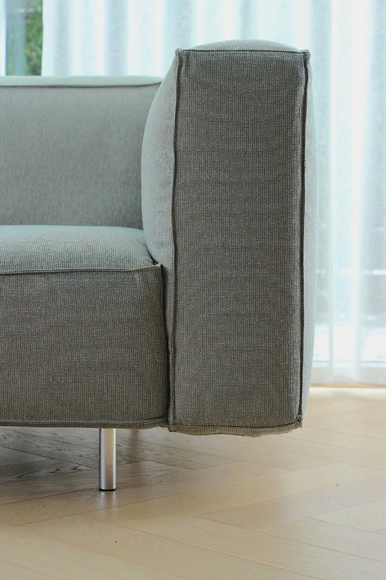 Este robusto sofá fue diseñado en 1998 por Henk Vos y su hijo Roderick Vos. El sofá 6400 tiene una apariencia cubista, pero un tacto suave y confortable. Esto lo hace atemporal, moderno y versátil. El sofá cuenta con una tapicería completamente nueva en esta hermosa tela.