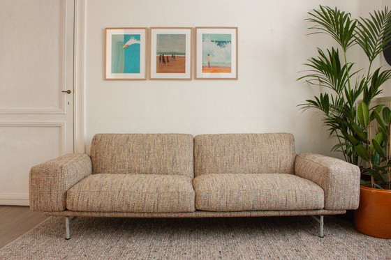 El 10010 Prime fue diseñado por Studio Truly Truly en 2020. El sofá es cómodo y su asiento grueso, casi voluptuoso, le confiere un aspecto suave pero arquitectónico. Los cojines de los brazos cuelgan ligeramente sobre el borde de la esbelta base, lo que confiere carácter al diseño.