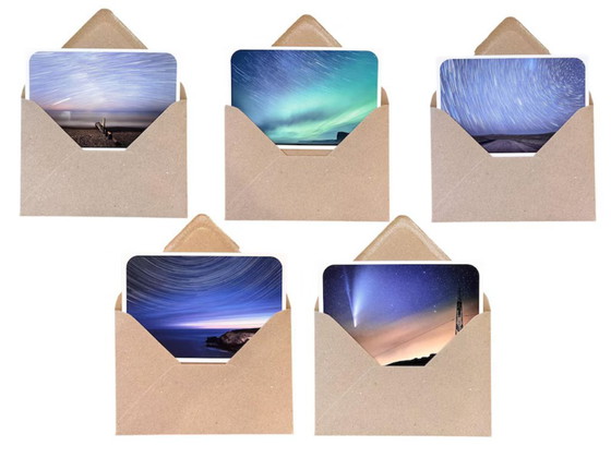 Gift adventure, the Astrophotography Postcard Set of 5 captures five epic destinations under the night sky.