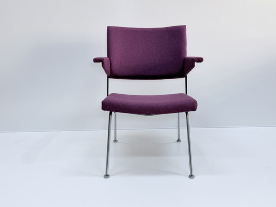Preciosa silla de diseño Gispen 1265, recientemente retapizada profesionalmente y lista para años de uso confortable. La silla cuenta con un interior nuevo y está tapizada con un tejido de lana de alta calidad (75 % lana) con una resistencia al desgaste excepcionalmente alta de 100 000 Martindale. Ideal tanto para uso residencial intensivo como para aplicaciones comerciales.