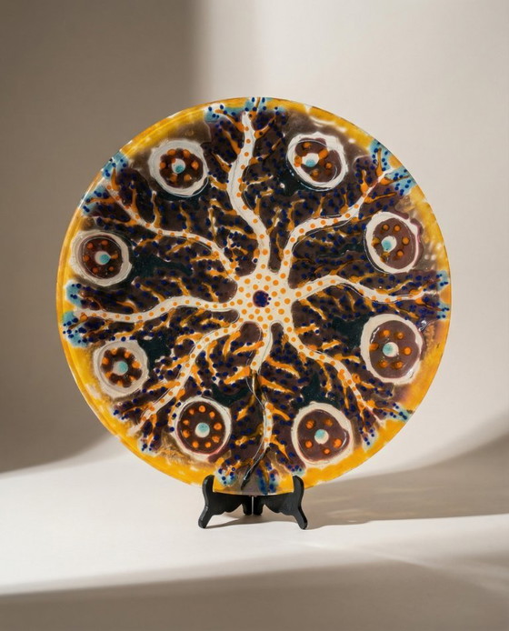 Gran cuenco escultórico de vidrio fundido hecho a mano – pieza única de arte contemporáneo – Ø 53,5 cm