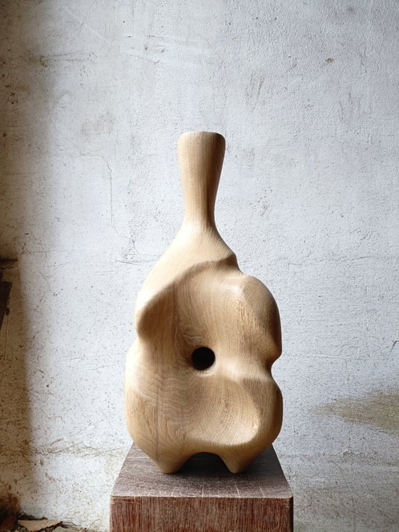 Gran jarrón/escultura abstracta en roble macizo tallado