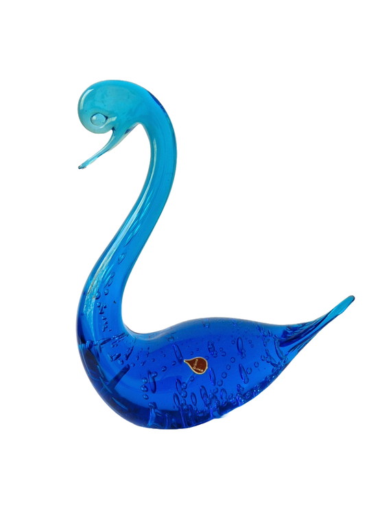 Gran cisne azul soplado a mano con burbujas de aire, hecho de vidrio macizo. Procedente de Gränna Glasbruk, Suecia, de la década de 1960. Incluye la etiqueta original. Altura: 20 cm. Peso: 855 gramos. En excelente estado. Vea las fotos para su propia impresión.