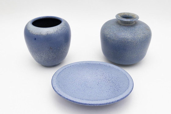Gunnar Nylund, juego de dos jarrones y un cake stand, diseño escandinavo, mediados del siglo XX.