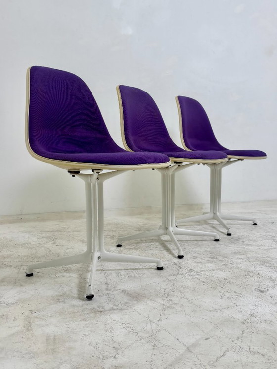 La silla La Fonda de Herman Miller Eames, producida por Herman Miller, es un clásico del diseño excepcional con un carácter distintivo. Una pieza icónica con un elegante tapizado violeta. Diseñada originalmente en 1961 para el reconocido restaurante neoyorquino La Fonda del Sol, esta silla combina una escultural carcasa de fibra de vidrio con una elegante base cromada. El acabado violeta aporta calidez y refinamiento a su diseño atemporal. Características: - Diseñada por Charles y Ray Eames (1961) - Producida originalmente por Herman Miller - Carcasa reforzada con fibra de vidrio con tapizado violeta - Elegante base de acero - Asiento cómodo y compacto - Pieza de coleccionista excepcional y pieza de diseño funcional. Especificaciones: - Altura: 88 cm - Ancho: 47 cm - Altura del asiento: 45 cm - Profundidad: 53 cm. Precio: 495 € por silla (varias disponibles).