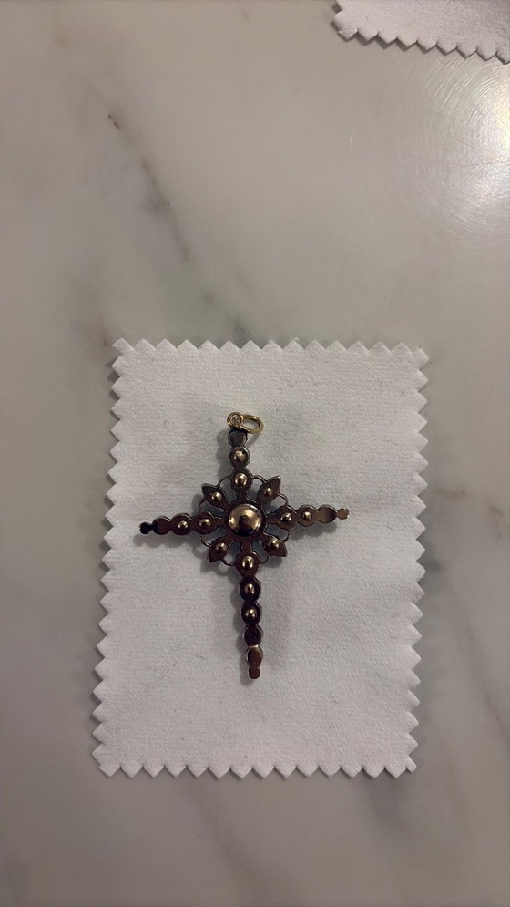 Hermoso colgante antiguo de cruz de diamantes de 1850