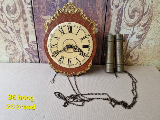 Este hermoso reloj de pared antiguo es una pieza atemporal que aporta elegancia y encanto a cualquier estancia. Con sus refinados detalles dorados y su clásica esfera con números romanos, este reloj irradia un encanto vintage que se adapta a la perfección tanto a interiores tradicionales como modernos.