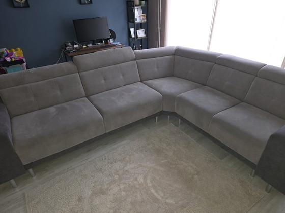 Sofá esquinero de alta calidad y bien cuidado. Consta de tres secciones: una de tres plazas, una de dos plazas y una esquinera. El lado largo mide 295 cm y el lado corto 240 cm. La altura del asiento es de 52 cm y la longitud del reposabrazos es de 93 cm. El sofá está en buen estado y se ofrece a un precio razonable.