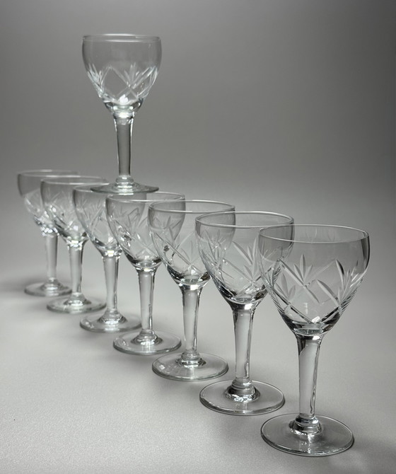 Holmegaards Glasværk - 1920s - Set of 8 Hand-Engraved Crystal Port, Dessert Wine & Sherry Glasses — Model Ulla