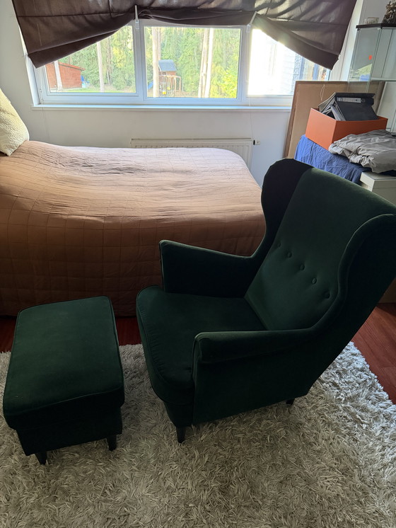 Transforma tu sala de estar con el conjunto de sillón y reposapiés Strandmon de IKEA, una combinación perfecta de comodidad y estilo. Tapizado en un verde intenso, este conjunto añade un toque de elegancia a cualquier hogar moderno. Su diseño escandinavo se realza con robustas patas de madera, que garantizan durabilidad y un atractivo atemporal. Ideal para relajarse, este dúo te invita a desconectar con estilo.