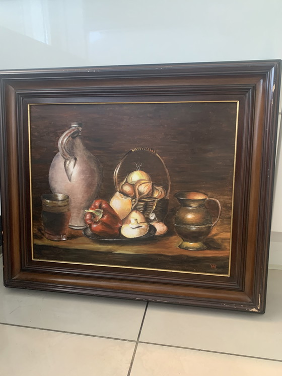 Este exquisito óleo captura la elegancia atemporal de un bodegón clásico. Los ricos y cálidos tonos marrones, rojos y amarillos crean una composición armoniosa que atrae al espectador a un mundo de serena belleza. El cuadro está enmarcado en un robusto marco de madera, que añade un toque de sofisticación a la pieza. Perfecta para añadir un toque de encanto clásico a cualquier habitación, esta obra de arte invita a la contemplación y la admiración. Realce su espacio con esta elegante obra de arte.