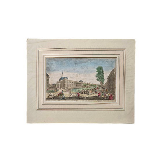 Grabado óptico del Blaak y la Bolsa de Róterdam, de 1762. Precioso grabado antiguo en cobre, concebido como lámina para vitrina. La imagen muestra el Blaak de Róterdam, junto con la Bolsa de Valores de la época y el Gapersbrug. En la parte inferior figura el título: «Vista de la Bolsa de Valores, el Blaak Sur y Norte, tomada desde el Gapersbrug en Róterdam». Debajo del título se indica: «Publicado según la Ley del Parlamento el 10 de abril de 1762». Incluye un paspartú y está envuelto en papel de aluminio para su protección.