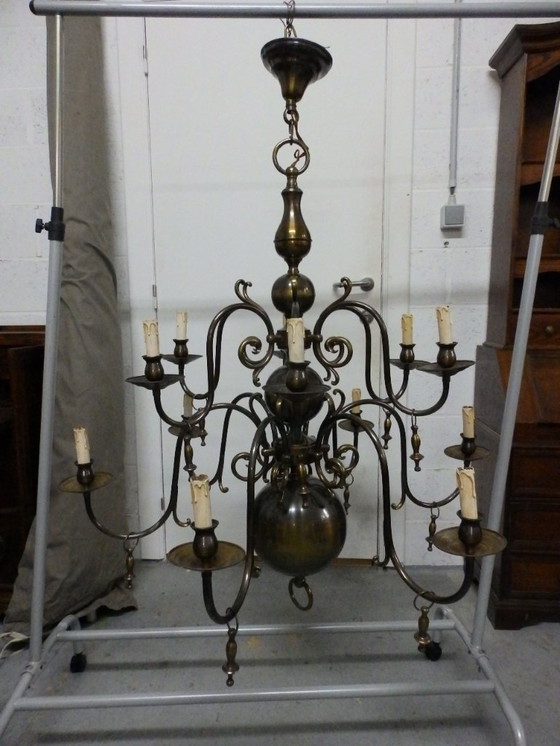 Impresionante lámpara de araña holandesa de dos niveles con 12 luces