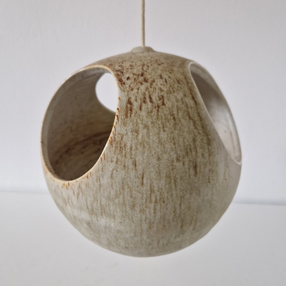 Este precioso globo colgante de cerámica de los años 60/70 de Jaap Ravelli es un complemento único para su interior. Su diseño vintage y sus sutiles tonos beige y marrón lo convierten en una opción elegante para colgar plantas de interior. Fabricado en cerámica de alta calidad.