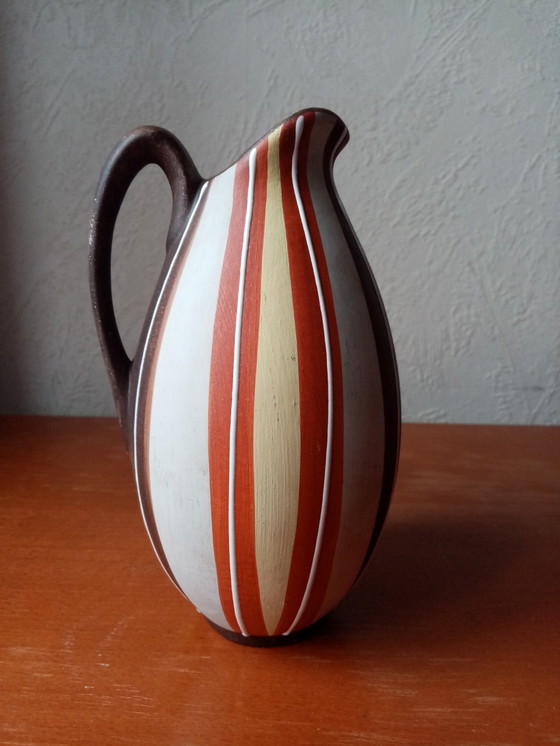 Jarra decorativa de cerámica alemana de la fábrica Eckhardt y Engler (Höhr Grenzhausen) de los años 50/60 en muy buen estado de conservación con medidas 18,50cm de alto y 9/10cm de ancho.