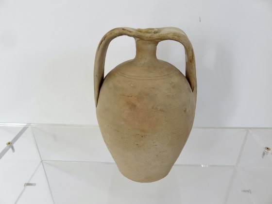 Ánfora, jarra, jarrón de terracota con asas, procedente del sur de Francia, de la década de 1950. Modelo poco común. Altura: 24 cm. Envergadura: 15 cm. Magnífico objeto decorativo.