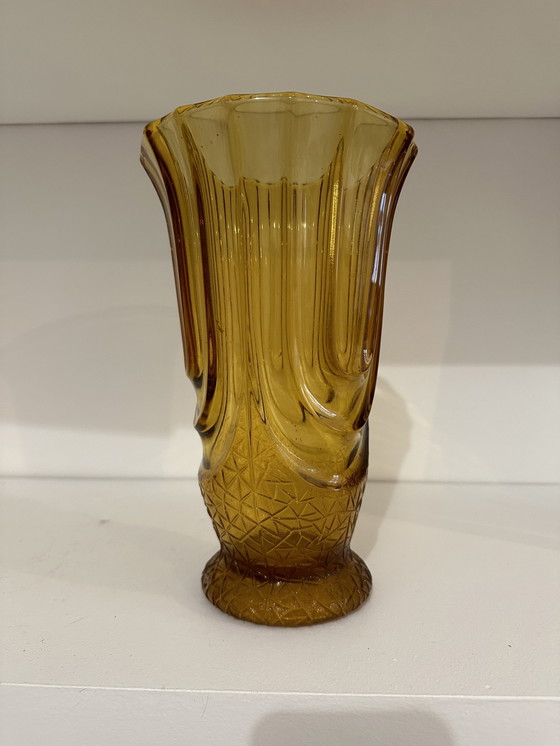 Jarrón Art Déco Vintage Grande de Cristal, Color Ámbar Miel Dale un toque de elegancia y carácter a tu decoración con este precioso jarrón Art Déco vintage, modelo Luxor, fabricado por la cristalería Scailmont en Bélgica. Su cálido color ámbar miel y su diseño en vidrio prensado típico de la década de 1930 lo convierten en una pieza única y atemporal. Características: • Estilo: Art Déco • Color: Ámbar Miel • Material: Vidrio prensado • Origen: Scailmont, Bélgica Este jarrón se distingue por sus líneas geométricas y su impecable acabado, perfecto para realzar una mesa, estantería o consola. Ideal para los amantes de la decoración retro o para completar una colección de objetos Art Déco. En muy buen estado para su edad, con una pátina que refleja su autenticidad. Para cualquier pregunta o solicitud de fotos adicionales, ¡no dudes en contactarme!