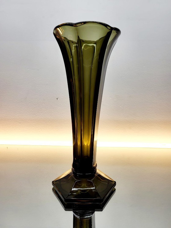 Jarrón Art déco Val Saint Lambert, serie Luxval modelo Américain L, color fumé, Bélgica