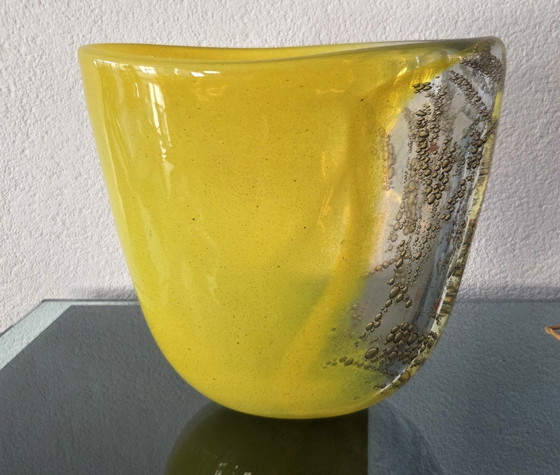 Este hermoso jarrón de cristal de diseño llamará la atención en cualquier habitación. Con su vibrante color amarillo y detalles transparentes, este jarrón añade un toque de modernidad y refinamiento a su interior.