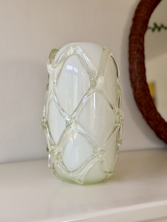Jarrón de vidrio hecho a mano con diseño de rejilla: objeto de arte