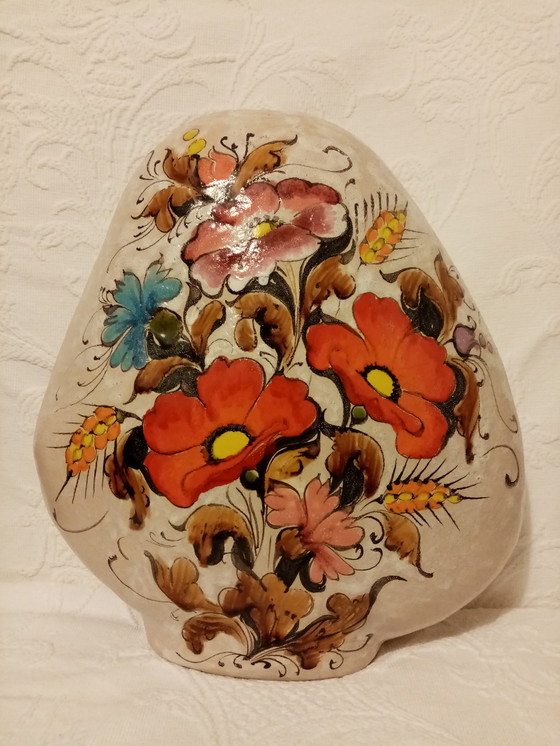 Jarrón decorativo de cerámica floral realizado en los años 60/70 por el ceramista italiano Elio Schiavon en perfecto estado de conservación con medidas 31cm de alto y 28cm de ancho.