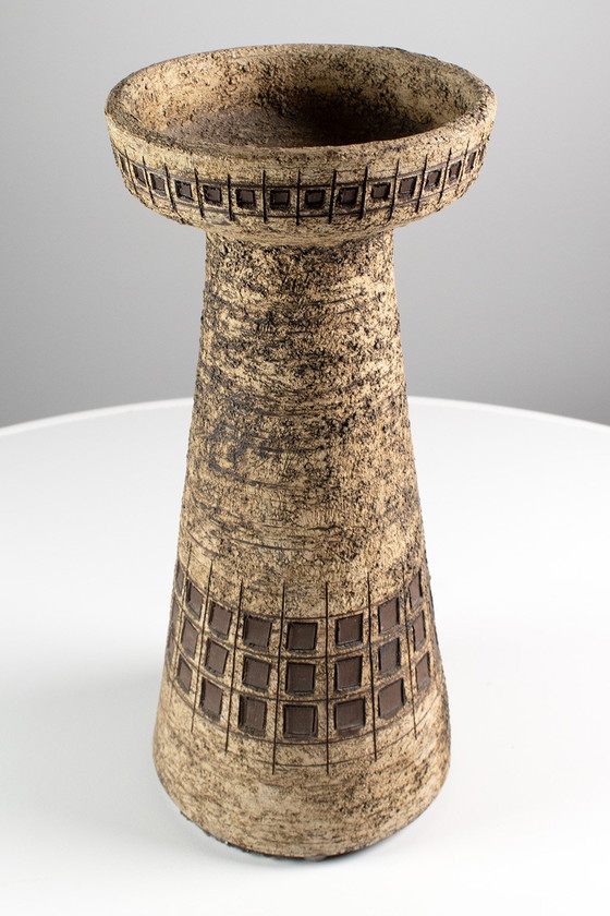 Jarrón con la marca Emella Besigheim. El jarrón tiene una textura rugosa, pero el interior está esmaltado. El cuello tiene una abertura de aproximadamente 4,3 cm. En buen estado vintage.
