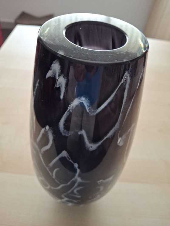 Este precioso jarrón decorativo de Orrefors, modelo Expo, es una moderna obra de arte hecha de cristal. Tiene un elegante color negro con motivos blancos que le dan un aspecto único y elegante. Perfecto para exponer flores o como pieza decorativa independiente en su interior.