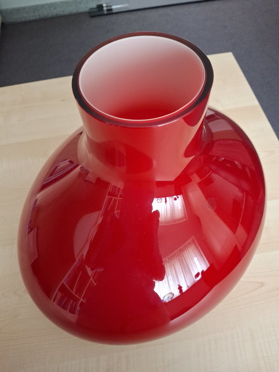 Este precioso jarrón decorativo Salviati de 2003 es una moderna obra de arte en vidrio. Con su llamativo color rojo y su elegante forma, este jarrón añade un toque de sofisticación a cualquier interior. Su superficie lisa y su acabado de alta calidad lo convierten en una elección perfecta tanto para fines decorativos como funcionales. Ideal para exponer flores o como pieza decorativa independiente.