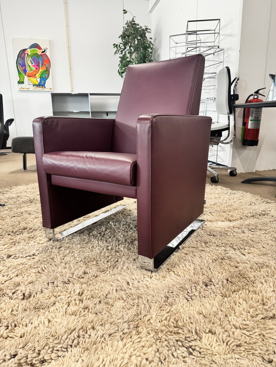 Sillón Jori Navy en piel Lipano color lila. Un sillón elegante con un asiento comodísimo gracias a sus patas de trineo con muelles, que se elevan hasta un respaldo alto con un simple empujón para mayor comodidad. En resumen, un sillón de primera categoría con una altura de asiento de 44 cm. Precio de venta: 3850 €. Este sillón Jori presenta un diseño elegante y moderno con una llamativa tapicería de piel color morado. Sus robustas patas de metal le aportan un toque de elegancia y durabilidad. Perfecto para un espacio contemporáneo, este sillón ofrece comodidad y estilo.