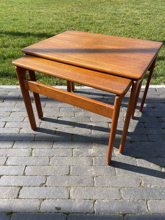 Mesas auxiliares vintage de teca. Magníficas y prácticas mesas auxiliares de Trioh. La refinada artesanía de los fabricantes de muebles de Trioh, Dinamarca, se reconoce al instante por las hermosas uniones y el acabado de la madera. Objeto: Mesa auxiliar. Material: Teca. País de origen: Dinamarca. Estado: En muy buen estado, con algunas señales de uso. Dimensiones: Ver fotos.