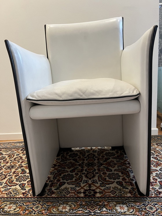 Juego de 4 sillas con reposabrazos Cassina Break 401, cuero blanco, Mario Bellini, excelente estado