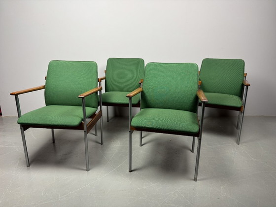 Un conjunto versátil y muy decorativo, ideal para usar alrededor de una mesa de comedor, en una sala de reuniones o conferencias, o como elemento decorativo en un interior residencial o profesional refinado. Un excelente ejemplo del auténtico diseño moderno de mediados de siglo de los Países Bajos.