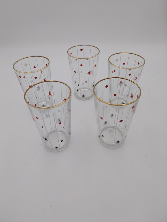 Juego de 5 vasos de agua de mediados de siglo de Francia.