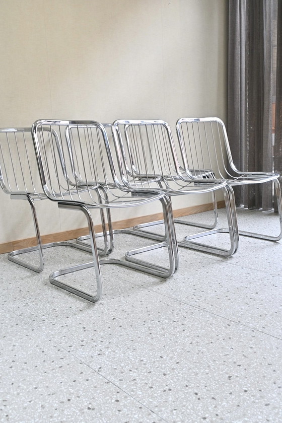 Juego de 6 sillas con estructura tubular cromada de Gastone Rinaldi