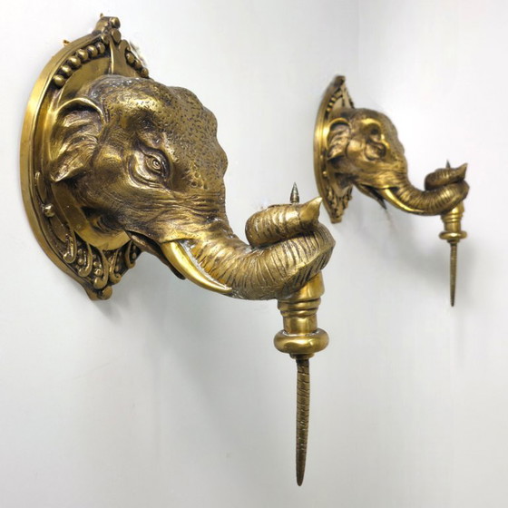 Juego de apliques de pared art déco de latón con diseño de elefante XL estilo regencia