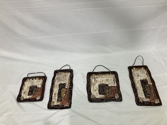 Un conjunto de 4 placas de pared o placa de pared Ruscha vintage. Fabricado en Alemania Occidental en la década de 1970. Son adecuados para colgar directamente en el orden deseado.