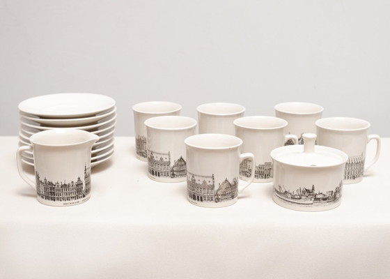 Vajilla vintage con decoración de ciudades y edificios históricos belgas, de Villeroy y Boch.