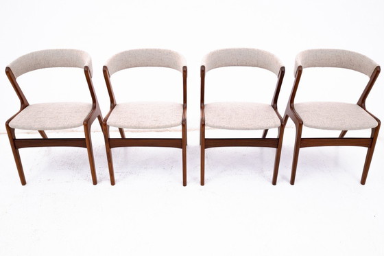 Juego de cuatro sillas danesas modelo 68 (Fire), diseñadas por Kai Kristiansen. Sillas fabricadas por Anderstrup Mobelfabrik en la década de 1960.