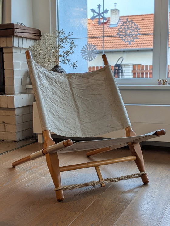 El sillón Saw es un ejemplo icónico del diseño escandinavo de mediados de siglo, con una construcción de madera desmontable y asientos de tela suspendidos. Se ensamblan sin tornillos y el ángulo del asiento se ajusta reposicionando los elementos de madera.