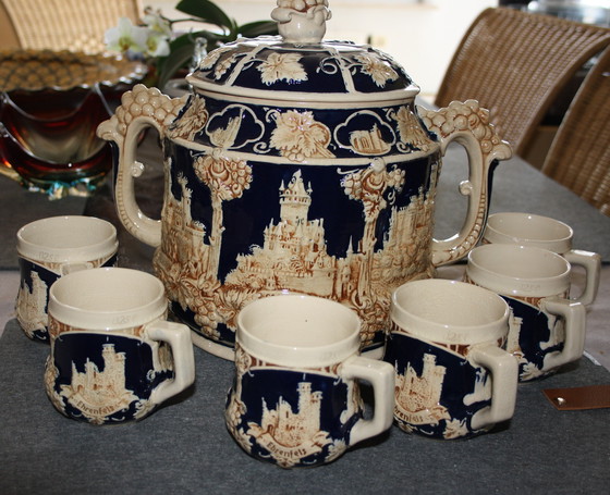 Juego de cuencos de cerámica antiguos con motivo del Palatinado: rareza y decoración, incluye 6 tazas