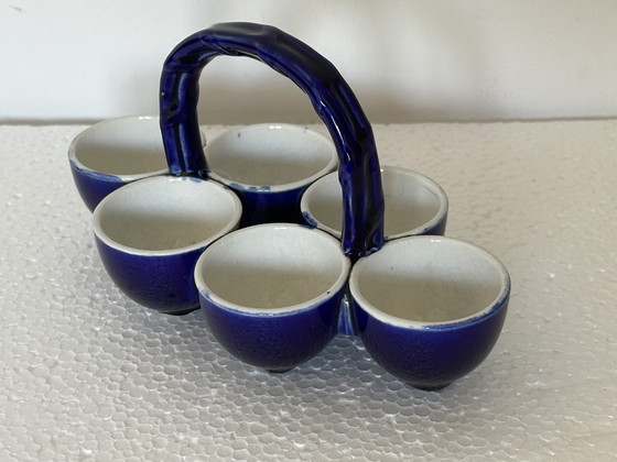 Juego de hueveras de loza azul cobalto y blanca, circa 1900, taller de Georges Dreyfus
